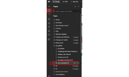 A gauche de l'écran, cliquer sur l'icône "pages" puis cliquer sur la page "actualités.